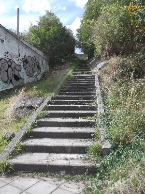 "........... Iets verder heuvelopwaarts ligt tenslotte de “Rampe des Ecoliers”, een trap voor de scholieren waarlangs, zo wordt althans vermoed, Vincent zich verplaatste van huis naar kerk en omgekeerd ............."
