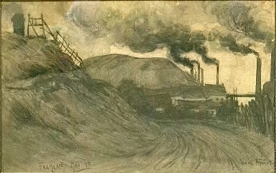"........... Dan had ik de oude prentbriefkaarten gezien van die mijnen en was naar Frameries gegaan met het idee dat de Charbonnage du Crachet-Picquery best eens de mijn van mijn tekening zou kunnen zijn. ............."