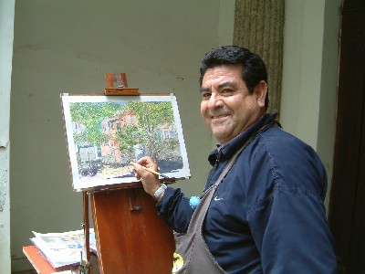 ".....In het voorportaal van een ander huis staat een artiest te aquarelleren. Het is de Chileen Carlos Solar Barrios. We maken kennis en spreken op de grens van het oude Rio Spaans met elkaar in plaats van Portugees. Raar. Als hij er achter komt dat ik Nederlander ben, wordt de penseel neergelegd. ......."
