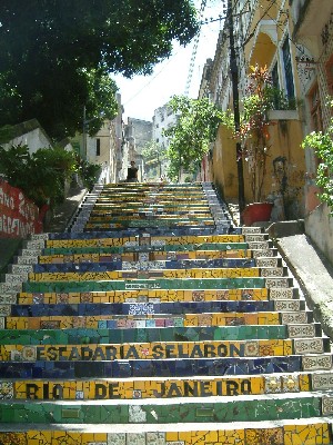 "........... Als ik over zijn in Rio werkende landgenoot Selerón begin, reageert Solar Barrios alsof ik hem hard op z’n pik heb getrapt. Selarón is de bedenker van de “Escada do Convento” het grootste openbare kunstwerk ter wereld in het centrum van Rio, vlakbij de boogjes van Lapa. “Die lul” zegt ie “stelt artistiek natuurlijk geen moet voor. Een trap heeft ie gemaakt, meer niet! Dat is toch helemaal niets? Nee dan mijn werk!”.............."