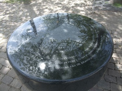 "........... Aan de andere kant van de brug ligt zo’n zelfde rond monument dat aan het begin van de brandgrens op de Westerkade bij de Maas ligt. ............."