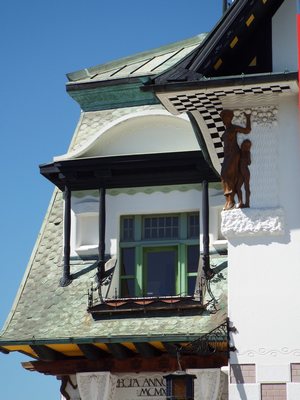 "........... Ik loop er nog eens omheen en bewonder de grote lantaarns, de geveldecoraties, ............."