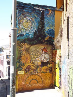 "........... “de Zaaier” van Vincent van Gogh op de muur van hostel Los Girasoles – de Zonnebloemen ............."