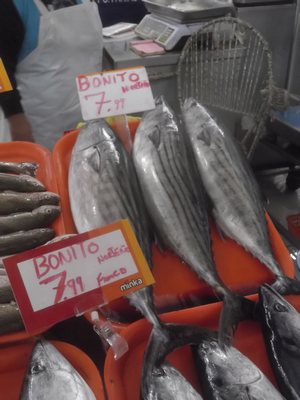 "........... Er liggen totaal onbekende vissoorten en schelpdieren uitgestald: een tonijnachtige vis die “bonita” heet, hetgeen “mooi” betekent, ............."