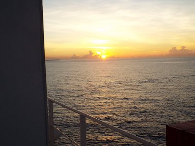"........... Net toen de zon opkwam, arriveerden we bij de haven van Caucedo. ............."