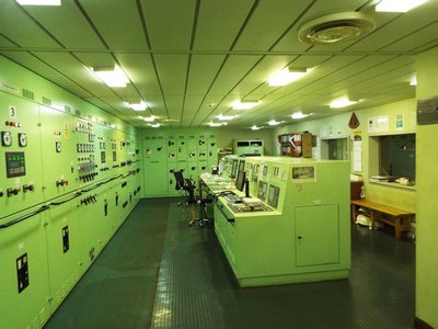 "........... Net zoals op de brug zit ook hier niemand achter de lange controletafel, ............."
