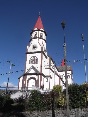"........... Dankzij de ligging van de terminal pikken we, jawel en het zal echt de laatste zijn, de “shinglekathedraal” van de stad nog even mee ............."