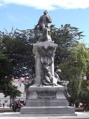 "........... We hangen wat rond bij “de Plaza” het centrale plein en het allesoverheersende pompeuze standbeeld van Magellaan ............."