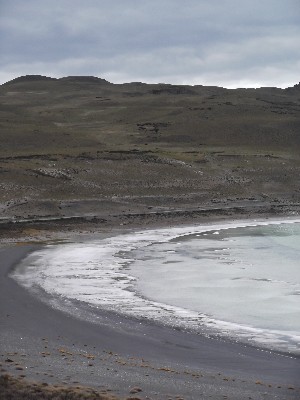 "........... daar een nog groter meer met een rand zout er omheen. ............."