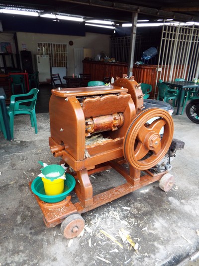 "........... maar om te zien hoe het wordt geperst, want op ieder terras waar het sap wordt verkocht staat heel opzichtig een houten persje met hulpmotortje. ............."