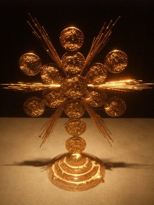 "........... Inventief fröbelwerk zoals de uit - gouden? – munten opgebouwde monstrans, ............."