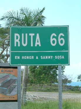 "...............Onderweg naar het internationale vliegveld van Santo Domingo is mij het groene bordje met “RUTA 66” opgevallen..................."