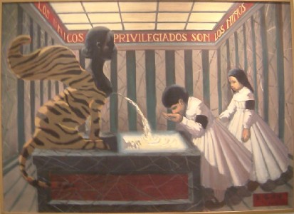"........Er is een fontein van Evita als sfinx. Uit haar borsten spuit moedermelk in een bassin waaruit de kinderen drinken “de enigen bevoorrechten zijn de kinderen” staat er op de wand..........."