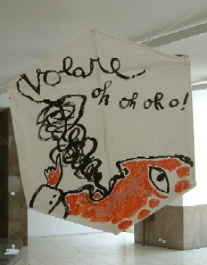 " Eerst even langs bij het Culturele Centrum Borges om te zien of de verkooptentoonstelling van Argentijnse galeriehouders al kan worden bekeken. Niet dus, nog in volle opbouw. Beneden pik ik net voordat er gaat worden afgebroken een expositie van kleurig beschilderde vliegers mee. Sommige saai, sommige sexy, ......sommige zelfs leuk. "