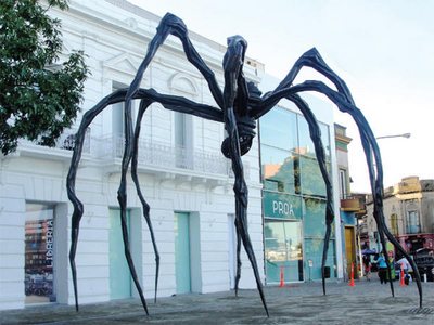 "........... maar net zo goed kunnen zijn geïnspireerd door de op enorme spinnen lijkende sculpturen van de Franse beeldhoudster Louise Bourgeois. ............."