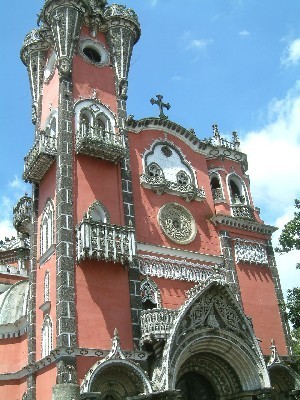 ".............Het is beslist geen gewoon kerkgebouw: donkerrood geverfd, op alle verdiepingen balkons, veel heiligenbeelden en suikertaartachtige decoraties. Officieel heet het de “Capilla de Nuestra Señora de las Angustias - Kapel van Onze Lieve Vrouw van Smarten” maar in de volksmond kortweg “Yurrita” naar de herenboer die de kapel op zijn finca liet bouwen na de uitbarsting van de vulkaan Santa Maria in 1902. De kerk is gesloten en begint in verval te raken. ..............."