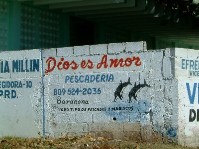 "........... In Los Cocos, even voorbij de reclame voor vishandel “Dios es Amor – God is Liefde” ............."