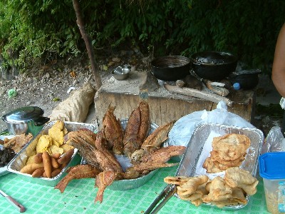 "........... eten we langs de weg lokale versnaperingen. De antropologe en haar collega’s snacken hier altijd, ............."