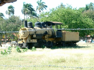 "........... Barahona. Even kijken bij de afgedankte suikerrietplantagelokomotief ............."