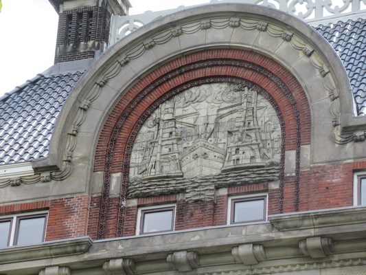"........ Hoeveel poen daar ooit werd verdiend, is te zien in het Elevatorhuis, een gebouw met boven in de gevel een kunstwerk waar deze oude havenactiviteit mooi is afgebeeld. ............."