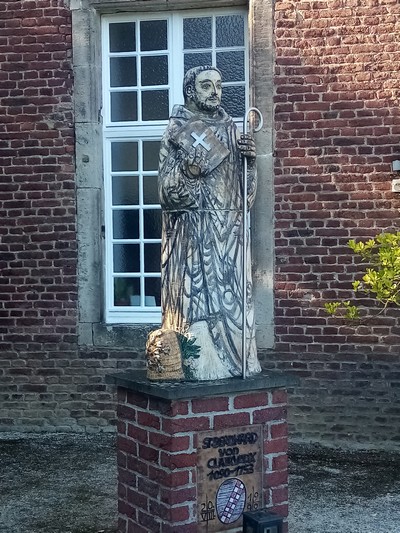 "........ en het beeld van Saint Bernard de Clairvaux met aan zijn voeten een bijenkorf ............."
