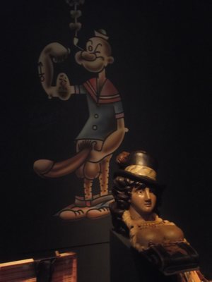 "........... wandschilderingen van wulpse pin-ups en eentje van Popeye the Sailerman met een enorme uit zijn gulp stekende stijve penis. “True Seaman”, luidt het bijschrift. ............."