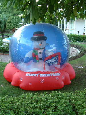 "............ Net zoals er twee weken later op het dorpsplein van Punta Plata een opgeblazen plactic bol met een kerstman en het bord “Noordpool” staat ..............."