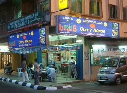 ".............. Zelf geef ik de voorkeur aan het restaurant op de hoek, waar volgens de lichtbak “bananaleaf muslim food” wordt verkocht dat geheel en al “halal” is, volgens de islamitische voorschriften bereid. Ik bestel nasi briyani en een glas “air barli - gerstewater” dat niet moet worden verward met gerstenat, want alcohol houdende drank wordt uiteraard niet geschonken. Om te bewijzen dat het echt gerstewater is, ligt op de bodem van het glas een laagje gerstekorrels die zo week zijn, dat ze zich door het rietje naar boven laten zuigen. .........."