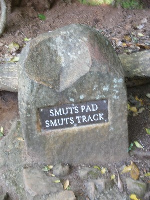 "........... Via de mooi gelegen en goed onderhouden botanische tuin van Kirstenbosch lopen we het bos in. “Jan Smutspad” staat er op een paaltje. ............."