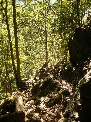 "........... Het pad begint al snel te stijgen en loopt wat ongemakkelijk door de keien en, zoals dat zo mooi heet, het “vals plat”. ............."