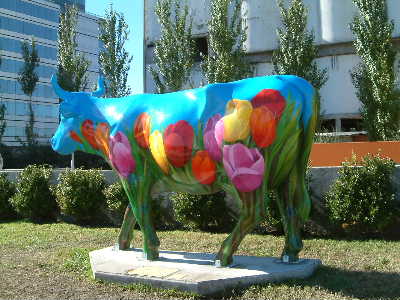 "...............Of minder opvallend, zoals de met tulpen beschilderde koe op de Plaza Reina de Holanda, die daar staat dankzij het Nederlandse Ministerie van Landbouw............."