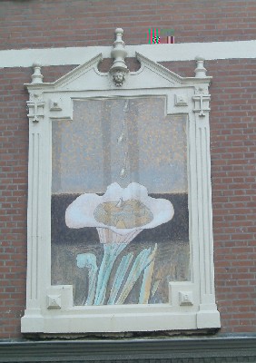 "...........Gelukkig ziet de “Bloem met Regendruppels” van Co Westerik er nog prima uit. Achter zo’n mooie gevel kan je haast niet anders dan een mooie winkel verwachten. Bij “Nika” verkopen ze diverse soorten koffie en thee en de machines om het thuis klaar te maken of je kan het er drinken. Cappuccino, koekje, glaasje water, op je gemak de krant lezen. Het leukste stuk Zaagmolenstraat tot nu toe, een beetje Buenos Aires...................."