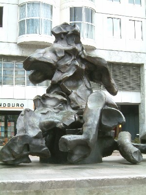 "..............Na de hele middag geen enkel origineel werk van de Kooning te hebben gezien, schiet me te binnen dat aan het Hofplein de enige echte de Kooning staat die Rotterdam rijk is. Een bronzen beeld met de titel “Seated Woman” dat in de volksmond “de Drol” heet. Zo wordt de internationaal erkende grootmeester van het abstracte expressionisme dus in zijn geboortestad geëerd. Met foto´s in etalages en met een drol. Oh ja, en met een naar hem genoemde kunstacademie. De grote herdenkingtentoonstelling is in Wenen te zien. Zou de Kooning voor het slapen gaan nog aan de Zaagmolenstraat willen denken als hij dit allemaal zou weten? Of zou hij zich in zijn graf omdraaien? Zelf zou ik zonder enige aarzeling het laatste doen. ............... "