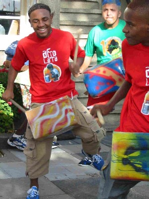 "Afro Lata" in actie. Junior, nog met zijn schoen aan, straalt een en al Braziliaanse vreugde uit.