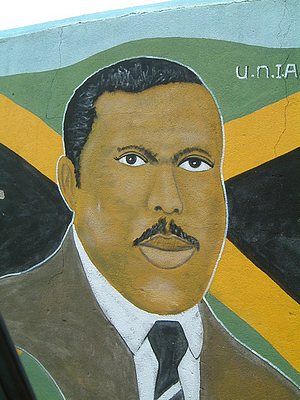 "........... De afbeelding van Marcus Garvey, de Jamaicaanse activist die terugkeer naar Afrika propageerde, ............."