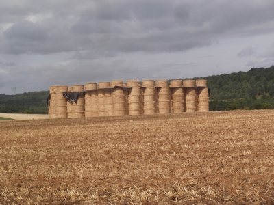 "........... De monotonie wordt enigszins onderbroken door een van rollen hooi gebouwd “kasteel” en het op 45 kilometer van de bron gelegen dorp Goncourt. ............."