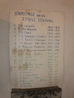 "........... een handgeschreven opsomming van “SENDELINGE VAN DE RYNSE SENDING” vanaf 1830 tot en met 1965. ............."