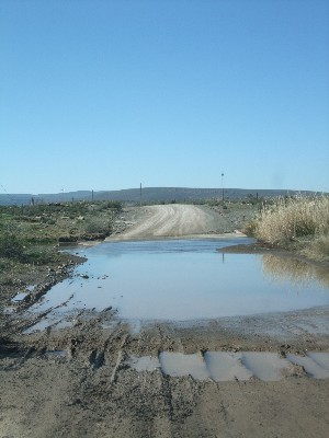 "........... Keer op keer wordt de weg gekruist door stroompjes waar met enige voorzichtigheid doorheen moet worden gereden. Aan bruggen doet men hier niet. ............."