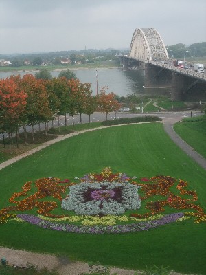 "........... Vanaf beneden in het gras kijkt het uit bloemen en planten – leeuwen van geelbruine Afrikaantjes - samengestelde stadswapen van Nijmegen tegen mij op. Het ziet er precies hetzelfde als in mijn herinnering! ............."