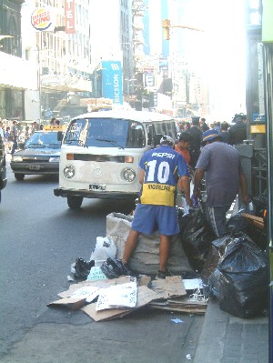 "....In Buenos Aires zou het karton al lang door “de cartoneros - de kartonophalers” zijn ingepikt. .....