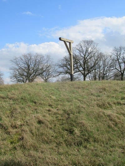 "........... op één van de grafheuvels staat een uit de toon vallende hoge galg, die eraan herinnert dat deze grafvelden van 1360 tot 1794 deel uitmaakten van het autonome Land van Ravenstein, dat hier ter dood veroordeelde misdadigers ophing en begroef. ............."