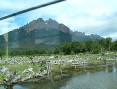 "...............De rit gaat door een totaal verlaten landschap, dat tegelijkertijd bizar en wonderschoon is. Overal steken grijze boomstronken uit de grond en liggen omgevallen eveneens grijze boomstammen. Ze vormen het tastbare bewijs van wat tijdens de vorige eeuw een Argentijnse goelag was. ....................."