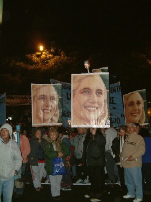 "Se siente, se siente, Evita está presente! - Je voelt het, je voelt het, Evita is aanwezig!" Naast fakkels en spandoeken, werden er veel grote foto's van een nog jeugdige Evita mee gedragen.