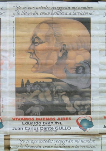 verkiezingsposter Eduardo Barone met een getekend portret en een vaak geciteerde uitspraak van Evita Perón