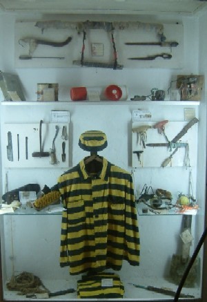 "In wat ik de “pronkcel” zou willen noemen, is in een alkoof een vitrine gemaakt waarin in beslag genomen uitbraakgereedschappen worden getoond. Van het type in een broodje gebakken vijl, zagen, houtboren, pikhouwelen, in een borstel verborgen vijl, in een tennisbal verborgen valse sleutel en zo. Wat het zwart geel gestreepte uniform, dat de vitrine overheerst, er mee heeft te maken, blijft duister."