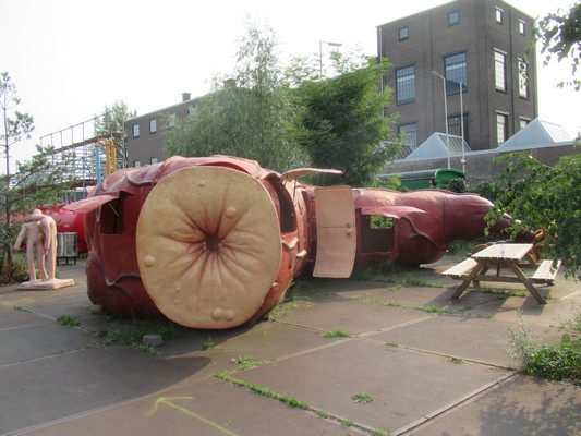 "........ Weinig moeite heb ik daarmee bij BarRectum uit 2005, die groot de correcte vorm van het menselijk verteringsstelsel heeft vanaf de tong, maag, dunne- en dikke darm naar de anus. Die laatste twee zijn ietwat uitvergroot om plaats te maken voor een bar in de dikke darm en een nooduitgang in de anus, wel origineel bedacht toch voor een sluitspier? ............."