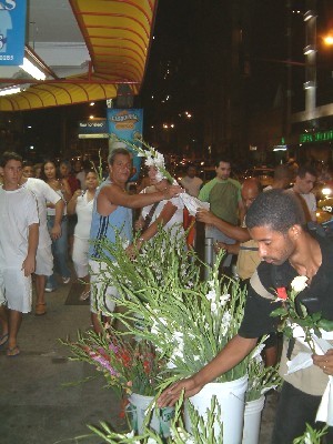 "...... Als wij richting strand wandelen, worden in de straten van Copacabana de laatste bloemen verkocht. Het zijn vooral witte gladiolen en witte rozen. De laatste keer dat ik zoveel gladiolen zag, is tientallen jaren geleden bij de intocht van de wandelaars op de slotdag van de Nijmeegse vierdaagse......"
