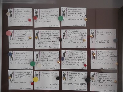 "........... en op ieder kaartje in de vitrines waarin de bewoners kleine annonces kunnen plaatsen. ............."