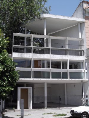 "........... In het voorste gedeelte, een op palen geplaatste langwerpige betonnen doos, was de praktijk gevestigd, ............."