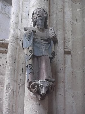 "........... De kerk herbergt veel meer stenen en houten beelden, hoog op de pilaren of aanraakbaar. ............."